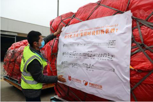 当地时间3月13日晚间,由马云公益基金会、阿里巴巴公益基金会捐赠欧洲的第一批口罩,运抵比利时列日机场eWTP(世界电子贸易平台)枢纽,并将从这里快速运往意大利红十字会。在这批防控物资的包装上,印着“消失吧,黑夜!黎明时我们将获胜”一句话。这句话,来自意大利歌剧《图兰朵》中最著名的一段咏叹调“今夜无人入睡”。