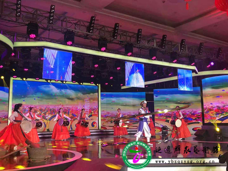 延边群众艺术馆带领的13人的延边文艺团队带来的《盛世长鼓》《荡秋千的姑娘》《顶水舞》《红太阳照边疆》……等富有浓厚延边民俗风情的歌舞、器乐节目为文艺活动增添了民族色彩,当朝鲜族象帽绽放在舞台时,全场响起热烈的掌声和欢呼声。