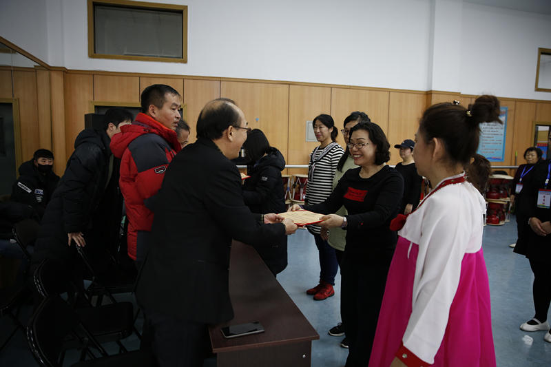 此次培训由延边州文化广播电视和旅游局主办,延边群众艺术馆承办。来自延边州八县市304个贫困村以及其他乡镇、村屯文化管理员等90 名学员参加了培训。 为保证培训质量,此次培训分两期举办:第一期培训时间是12月14日至12月18日,第二期培训时间是12月21日至25日。开设理论讲座“公共文化服务保障法及村基层综合文化服务中心职能发挥”;实践课“朝鲜族舞蹈基础、中国朝鲜族打击乐、基础健身广场舞、陶笛基础吹奏”4门课程。鉴于第一期培训男学员不适宜舞蹈培训,在第二期培训中,延边群众艺术馆及时调整课程,为男学员增设“陶笛基础吹奏”课程。授课教师由延边州文广旅局文化事业处处长、延吉市朝鲜族非遗保护中心打击乐首席指导、延边群众艺术馆副馆长、延边群众艺术馆编导老师讲授。